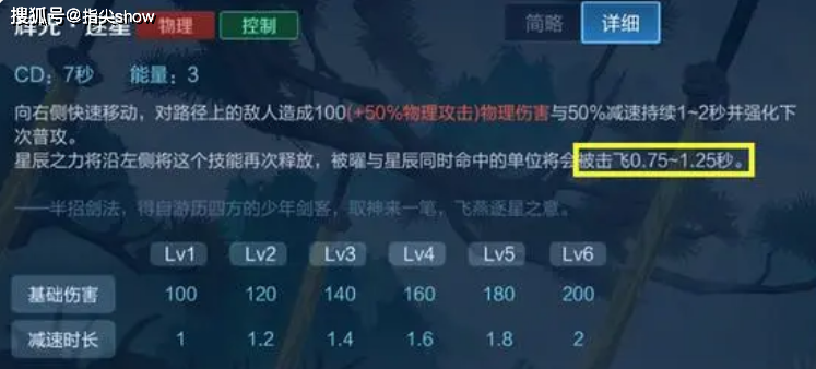 2技能的击飞,其实最初的设计是有成长的,0.75-1.25秒,但几个版本以来这个机制都没生效,只是固定的0.75秒,后来被发现后,因为曜的数据还算健康,索性就直接改了文案,也就是固定的0.75秒。