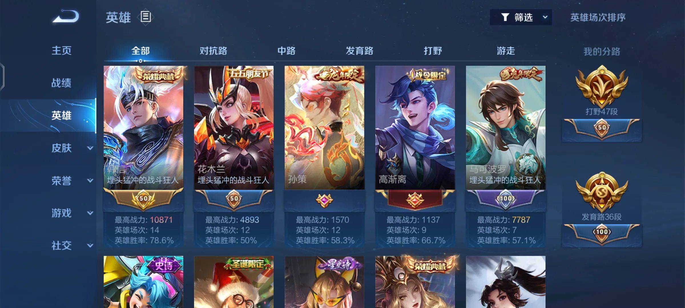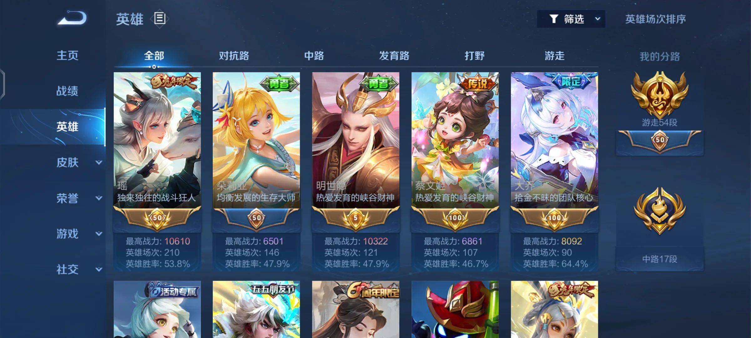 当你知道了这一点之后,对于你的游戏是有一定帮助的。比如讲一个主页全是辅助的账号,这一局突然玩起了打野,你就知道这一局你只需要不送基本上就能稳赢。