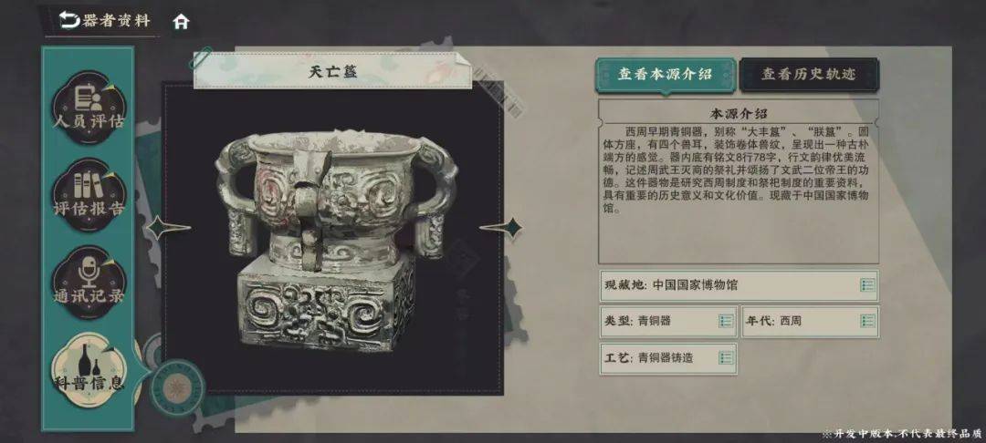 《物华弥新》在古物科普方面也是非常用心,官方从本源介绍、历史轨迹等多个层面,对古物的生平来往进行了非常细致的叙述,让玩家了解得更加透彻。而从器者、叙事等多角度对于华夏千年文明的诉说,为游戏赋予了一定的文化内涵,对于历史资料的细致考据,也直观展现了创作团队的用心。