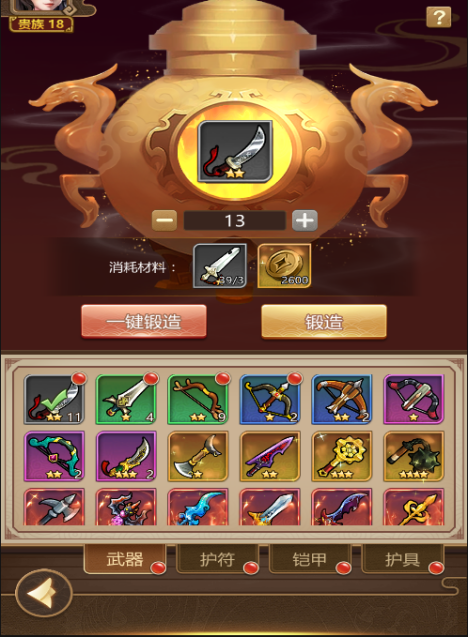 a) 概述:玩家通过消耗3个低级同类型装备和少量铜币锻造出更高级的装备