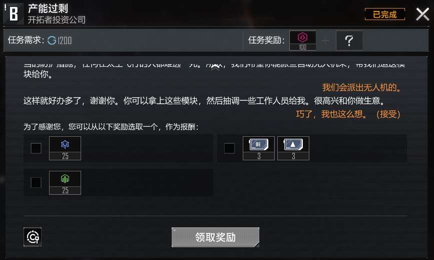 完成NPC任务,获得任务奖励。在部分NPC颁发的任务中,有一些任务给予我们奖励的同时,还能给予少量劫掠者战功。虽然该途径更加稳定安全,但单靠做任务是无法达到50000战功的基本要求的,属于战功的次要来源。