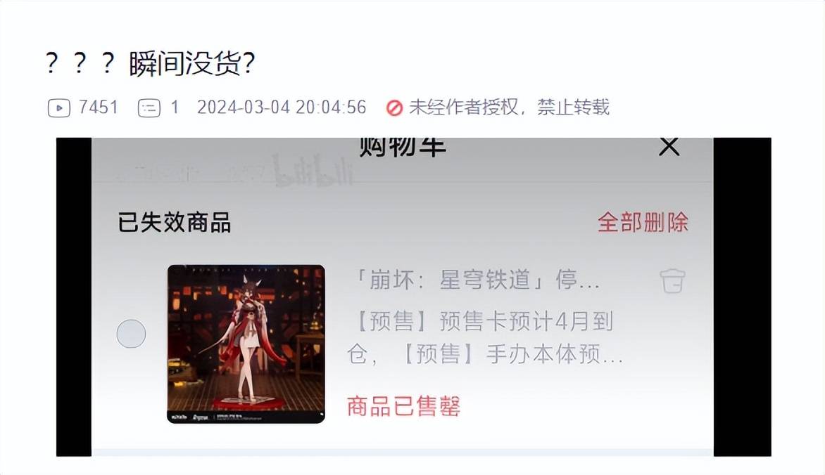 不过太过于良心的手办,也使得玩家们压力有点大。有玩家准点蹲守在官方店铺,想要第一时间买下停云的手办,结果就慢了半秒钟的时间,直接统统卖光!