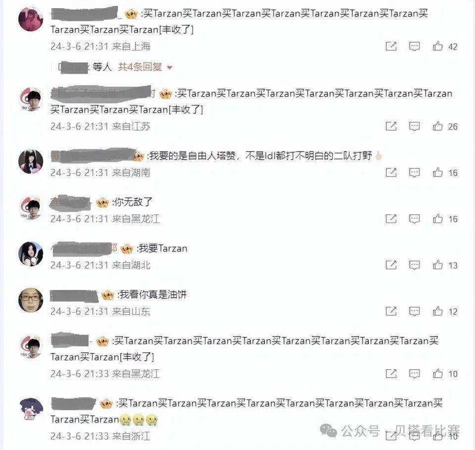 面对WBG官博的这一官宣,粉丝们愤怒了。在官博微博下方,大量粉丝刷屏,要求管理层买tarzan,不要连LDL都打不明白的二队打野!