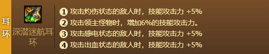再者就是耳环部位,如果图泛用,那么深潜耳环就是不二之选。领主6技攻、异常5技攻、直伤4技攻都是毕业词条。如果带狂龙武器,范围6技攻也可用。