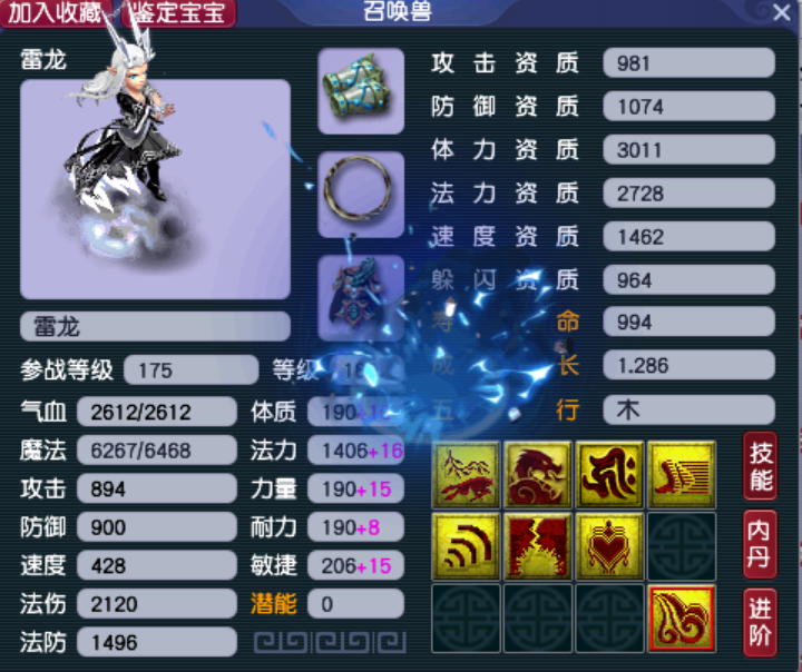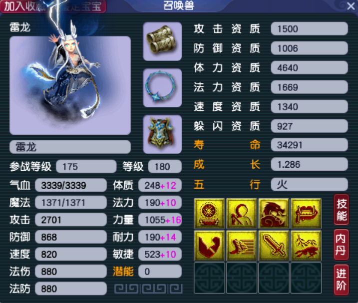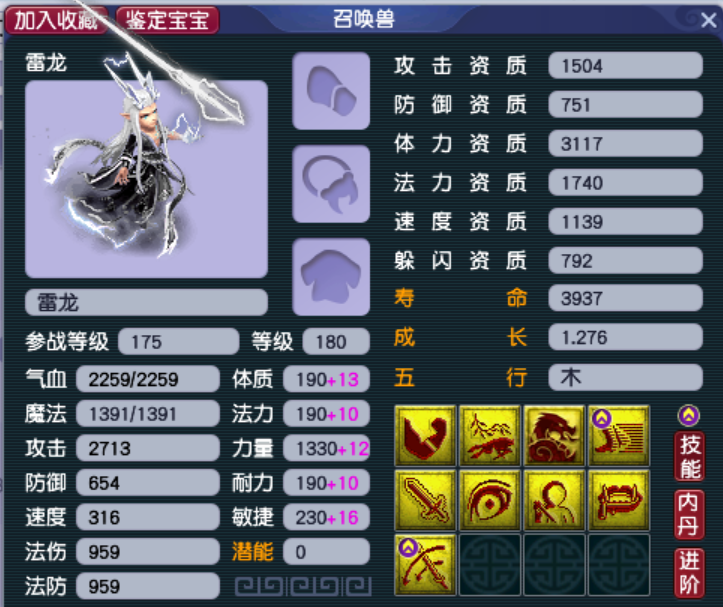 第一只雷龙拥有须弥、龙魂和风气龙游三个特殊技能,唯一美中不足的是高级法术波动和高级法术连击只能二选一。