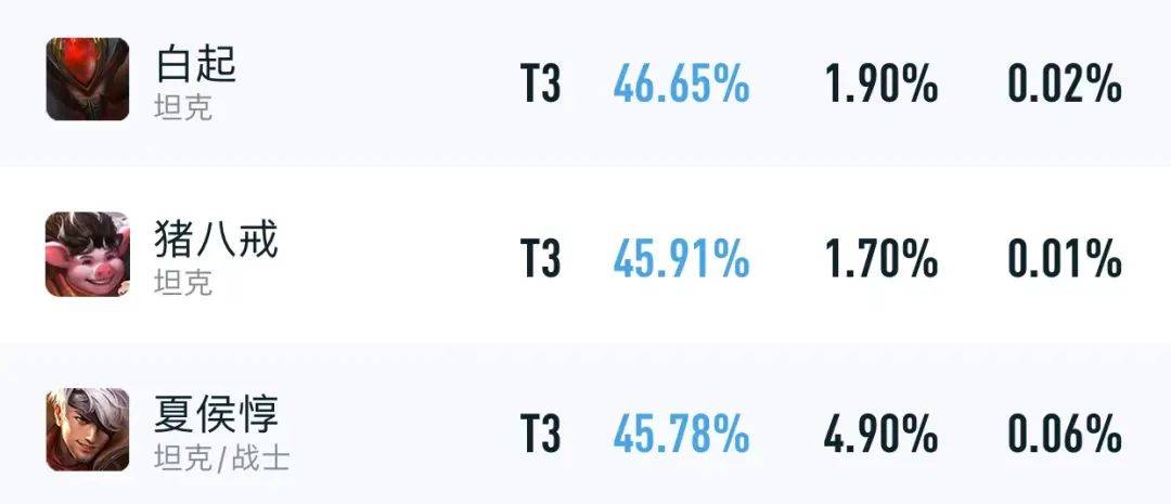 如上图所示,廉颇,白起,夏侯惇,项羽,程咬金,刘邦,苏烈,猪八戒和阿古朵,这些坦克英雄都会提升150~200点基础生命,同时,也下调了他们的成长生命,到满级后的总值不变。