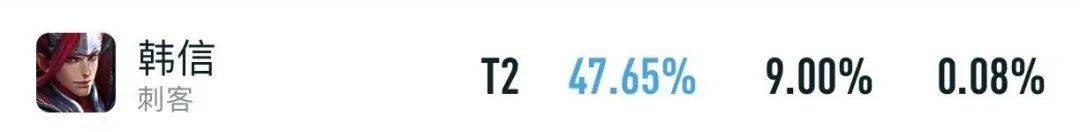 以上则是韩信最新的顶端局数据,出场率仅有9%,胜率也没有过48%,排在了打野榜的中下游,由此可见,在快节奏的环境里,韩信确实不好打。