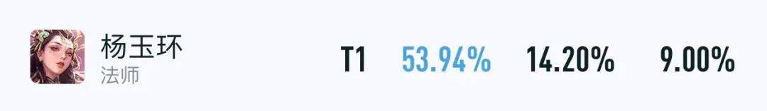 以上则是杨玉环目前的顶端局数据,在23.2%BP率的前提下,胜率无限接近54%,还是比较夸张的,属于“版本恶霸”之一。