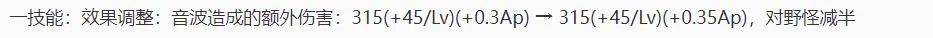 而此次的版本更新,将会下调一技能对野怪得伤害,依旧是熟悉的经典对半砍,作为补偿,也提升了一技能的0.05Ap加成,让杨玉环的后期输出高了一点点。