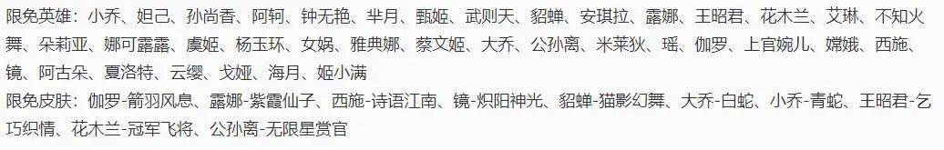 英雄这块,几乎所有的女英雄包括武则天,都能免费在5v5里使用,而皮肤这块,则有镜,花木兰和貂蝉的FMVP。