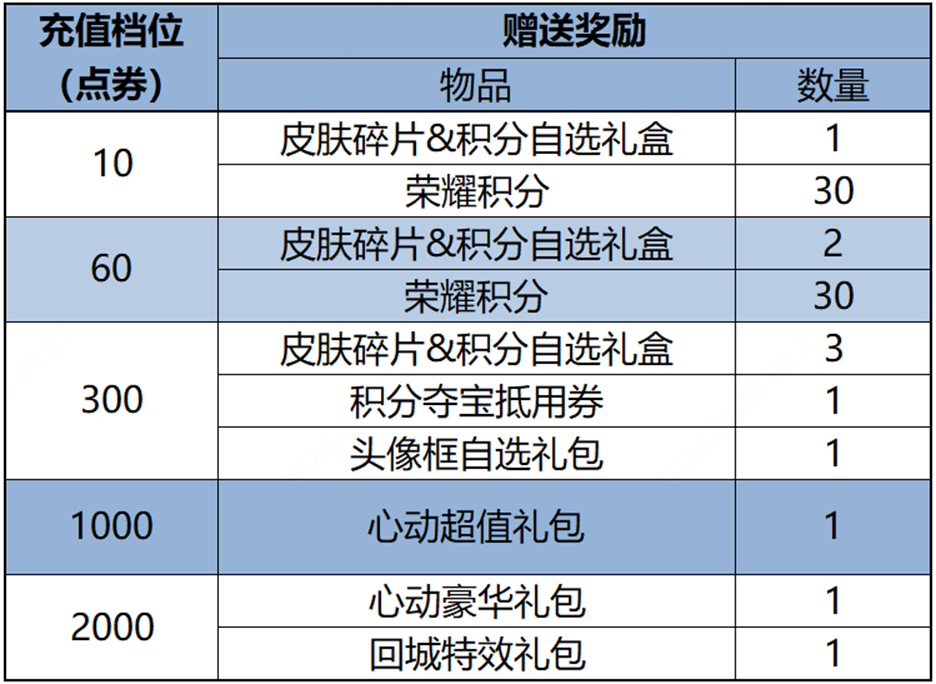 3月8日至3月11日,会上线最新一期的累计充值活动,以下是各档位的奖励。