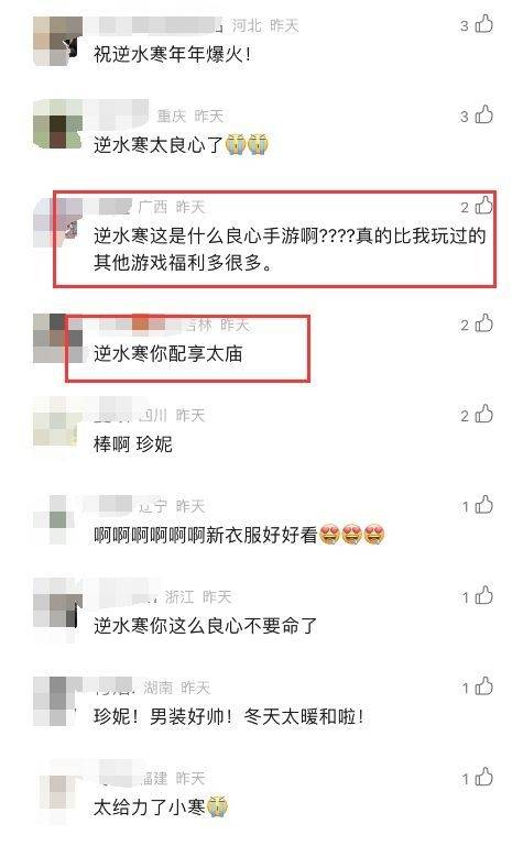 玩家们对于这次大手笔的活动感到十分震惊和惊喜。无数玩家表示“好好好,逆水寒nb”“逆水寒你这么良心不要命了”“逆水寒你配享太庙”,还有的玩家认为“逆水寒这是什么良心手游啊????真的比我玩过的其他游戏福利多很多。”