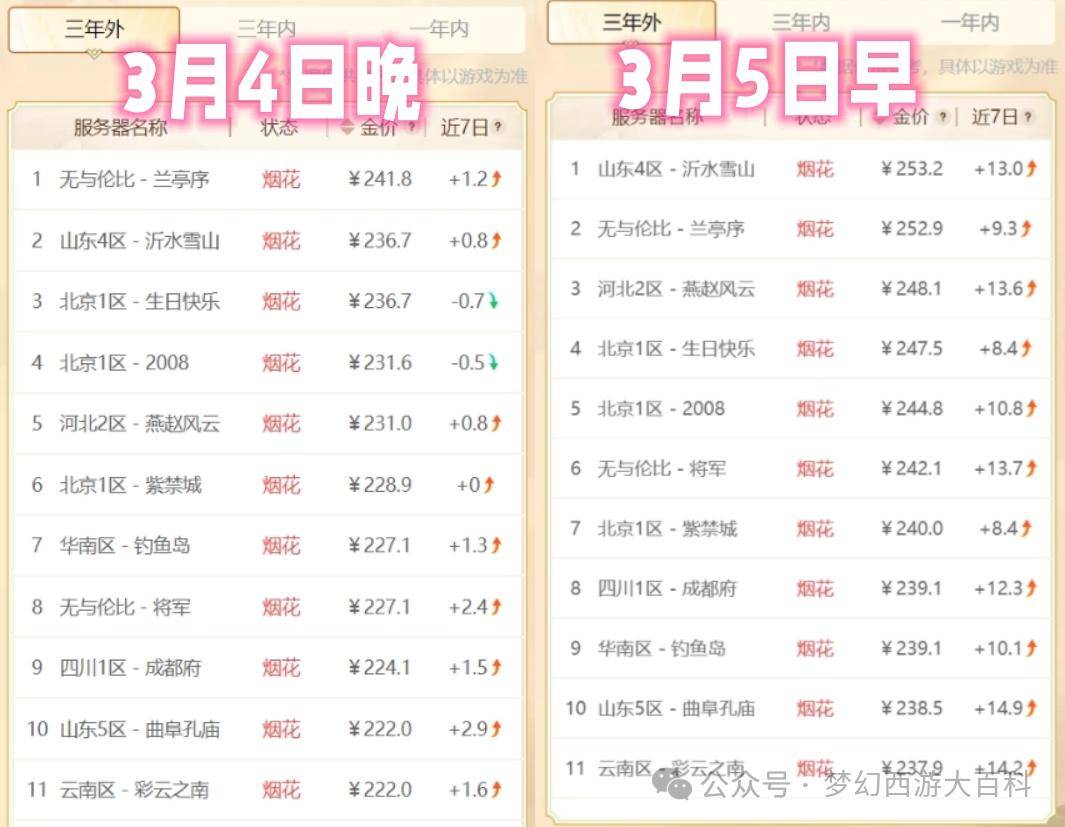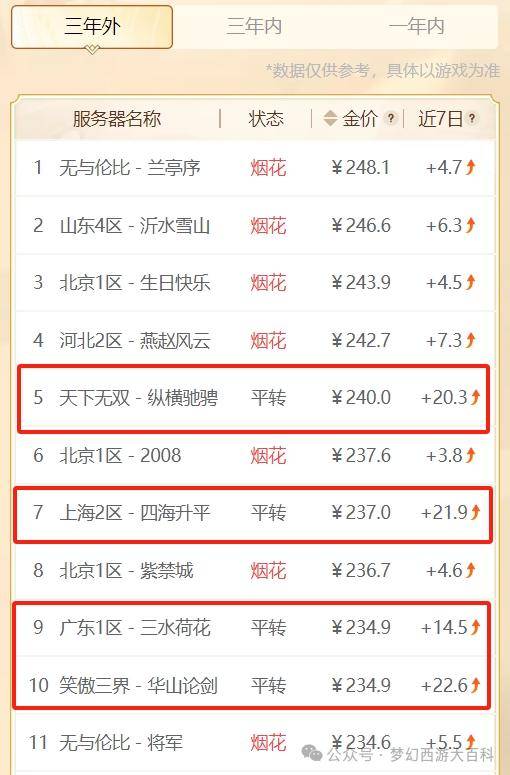 那么比例什么时候才能真正上涨呢这还不简单?消耗大于需求就可以了!别看什么XX大火区一夜暴涨好几十,凭空上涨那都是虚的。等比例降下来之后再稳步上涨的,那种涨才叫真的涨就像下面这些梦幻币存量少的区,大量老板进区秒梦幻币玩道人,比例那不就涨得飞起了么?