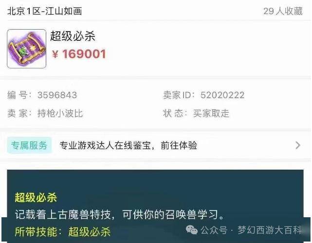 聊完比例,咱们再来聊聊超级兽决。道人放出后,超级兽决以平均每小时2本的速度产出,极品垃圾超级兽决几乎都出过一遍,其中不乏超级必杀、超级魔之心、超级夜战等有很多都是之前有过成交,且价格突破6位数的超级兽决