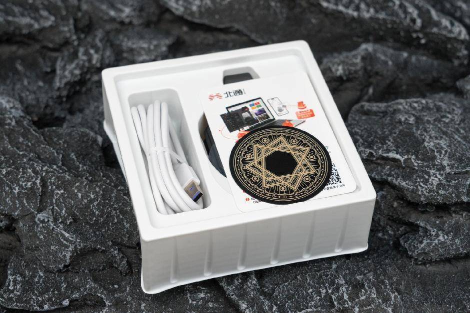 除了散热器主体外,整个包装还包含了磁吸贴片、充电线以及保修卡。磁吸贴片的设计使得散热器更牢固地吸附在手机背面,显示了北通在细节上的用心。