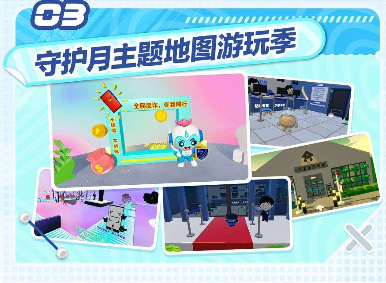更值得一提的是,在【蛋仔守护月】当中将会再一次将反诈工作深度结合到UGC生态当中去,以UGC地图创作为载体,让反诈知识相关的内容在其中摆脱枯燥乏味文字描述,通过场景化、互动化的内容演绎,让玩家能够在玩的过程中不断了解并学习反诈知识。