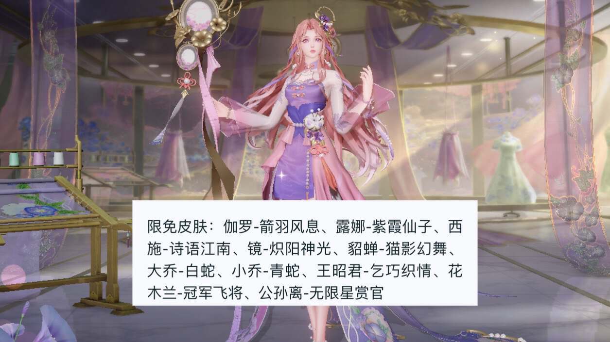 在妇女节期间,官方还特意开启了皮肤限免活动,一部分女性英雄的皮肤可以免费体验。基本上都是一些高质量的皮肤,比如西施的诗语江南,镜的炽阳神光,王昭君的乞巧织情等等,这些皮肤的质量都很高,在活动期间大家可以尽情的体验这些皮肤。当然了,不建议去排位赛体验,想要体验皮肤可以去无限乱斗节日版。