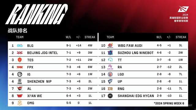 随着赛程进行到第六周,意味着常规赛阶段的赛程已经过半,而在还剩下近一半的比赛还未打完的情况下,现在LPL季后赛的晋级形势其实已经相当明朗。从积分榜目前战绩可以看到,TT目前是3胜7负的战绩,这也意味着从第十二名的TT开始到最后一名的EDG,已经基本失去了晋级季后赛的可能。今年春季赛RNG和EDG两大豪门无缘季后赛,这样的结果让人还是始料未及。