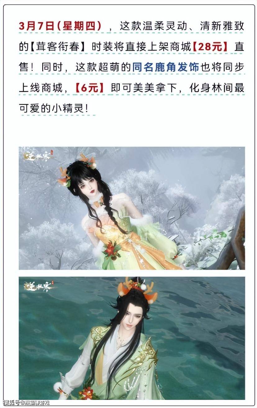 《逆水寒》手游被称为国内画质最好游戏,商城不卖数值,6元不加属性外观是备受玩家欢迎。随着踏青季即将来临,网易为玩家献上了一款叫作“茸客衔春”的时装,这一看设计就是为了让玩家踏青“上春山”游玩的。