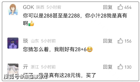 还有玩家说:“别说28元了,就是卖288元,328元,我都不觉得贵。“