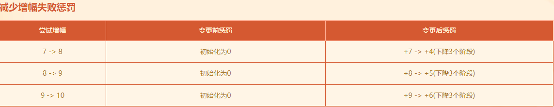 本次活动期间,使用活动的普通增幅,+7之前会失败但维持原本等级不掉级