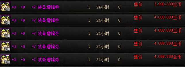 至于武器部分,即使是全程安全增幅所需的金币也要5762559金币,因此建议直接买+7增幅券更实在,而不是拼概率自己丢,1张的价格在400万金币左右。
