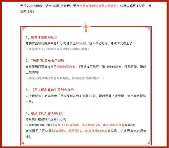 与此同时,所有赛季服的玩家,还全都可以用3万铜钱一张的价格,购买5张10小时点卡。