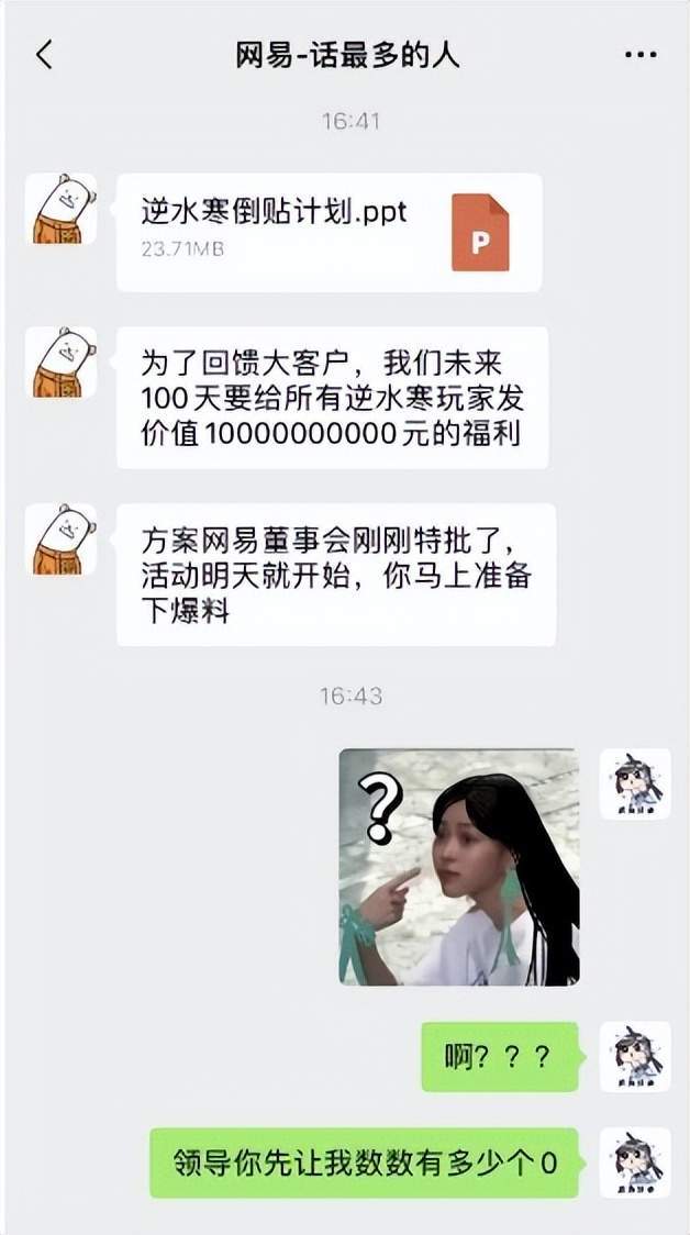 好家伙,之前联动时还跟《永劫无间》为谁是太子谁是逆子而争论,这下《逆水寒》手游可是网易董事会认证的“大太子”了!