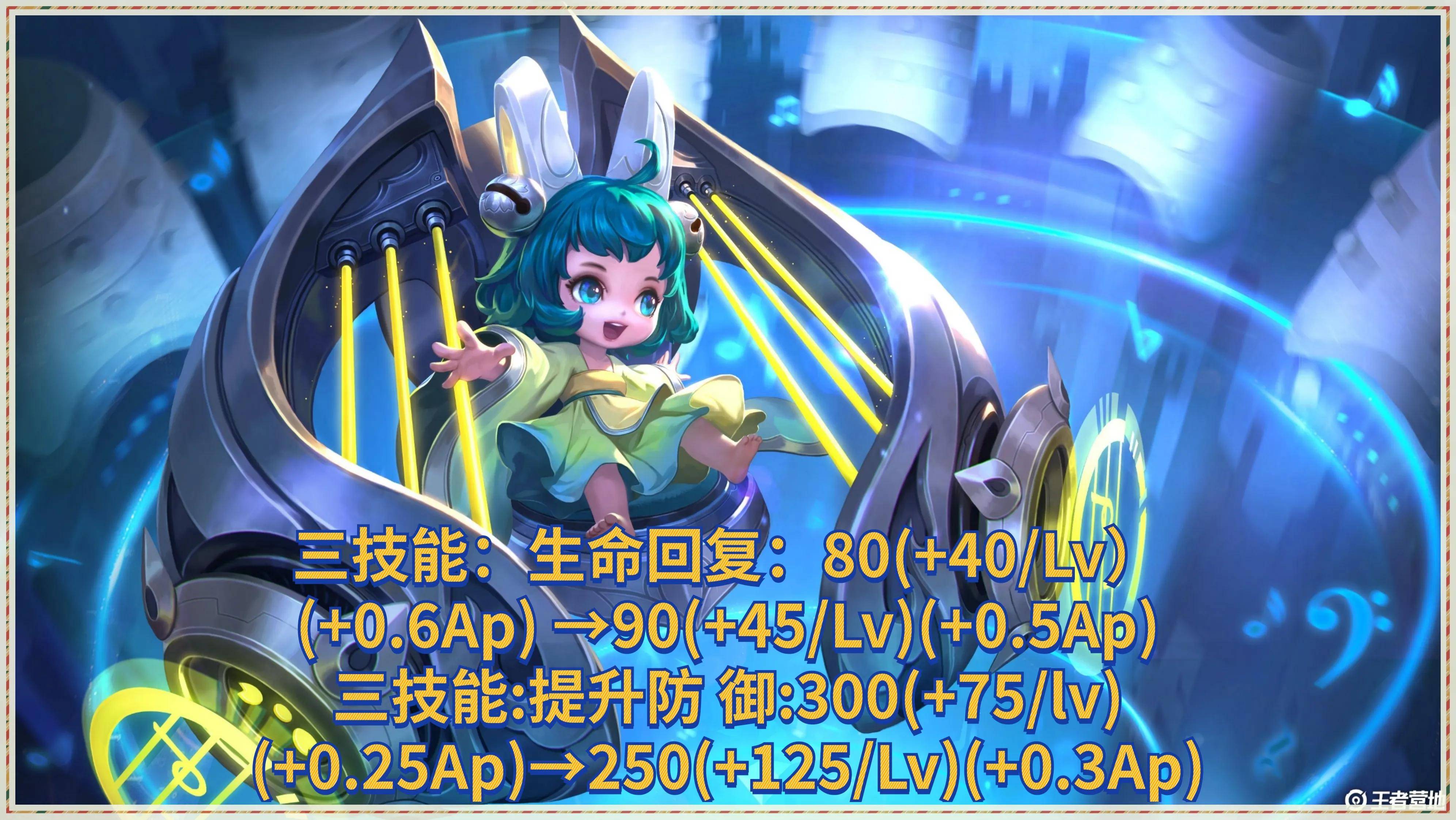 首先是蔡文姬,蔡文姬三技能的生命回复能力从原本的80上调到90,每级成长40上调到每级成长45,但是AP加成却从0.6下调到0.5。