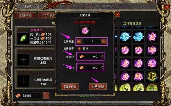 玩家可以在拍卖行系统中可以买卖各种道具,同时也可以自己上架道具进行售卖。