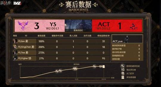 2023年12月8日,第五人格IVL秋季赛第九周首日的比赛开始,在当天的比赛中,YS以2胜0平1负(13:11)的比分击败ACT,以下是本场比赛战报。