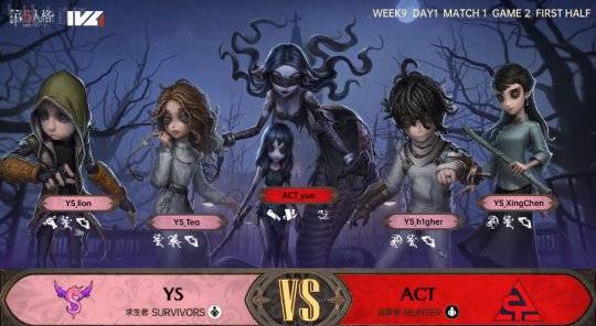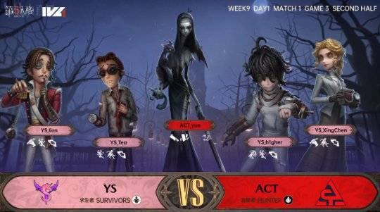 YS的求生者选择了大副、律师、病患、记者(BAN歌剧演员、梦之女巫);ACT的监管者yue选择了“使徒”。(BAN先知、前锋、勘探员、“心理学家”)