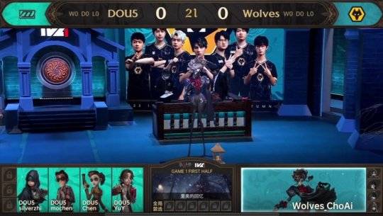成都Wolves的求生者选择了祭司、调酒师、守墓人、古董商(BAN歌剧演员);DOU5的监管者Yan选择了守夜人。(BAN先知、佣兵、大副、“心理学家”)