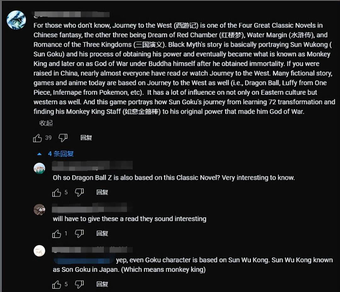 -冷知识!西游记是中国四大名著之一,另外三部是《红楼梦》、《水浒传》、《三国演义》。黑神话悟空基本上描绘了孙悟空获得力量的过程,以及变成所谓的美猴王并最终成为斗战神的故事。如果你在中国长大,几乎每个人都读过或看过《西游记》。如今许多虚构的故事、游戏和动漫也是基于《西游记》(例如《龙珠》、《海贼王》中的路飞、《口袋妖怪》中的地狱火等)。它不仅对东方文化产生了很大影响,对西方文化也有一定的影响。这款游戏中展现了悟空从学习72变身,找到如意金箍棒到最终成为战神的旅程。