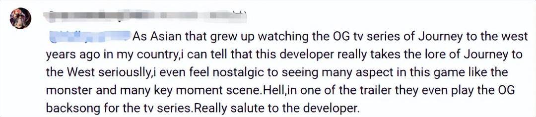 作为一个在我们国家电视台看《西游记》长大的亚洲人,我可以看出这个游戏开发商对《西游记》故事的认真态度。游戏中许多细节都让我感到怀念,比如怪物和一些关键时刻场景。甚至他们在预告片中,还播放了电视剧的BGM!真心向开发者致敬。
