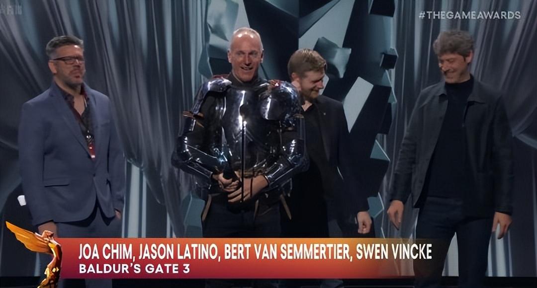 博起!让我们恭喜《博德之门3》登上年度游戏宝座,以这款游戏的品质绝对是实至名归,主创的这身铠甲也证明了他们的自信。