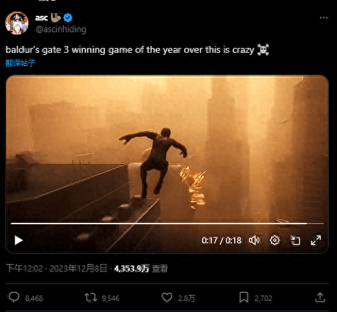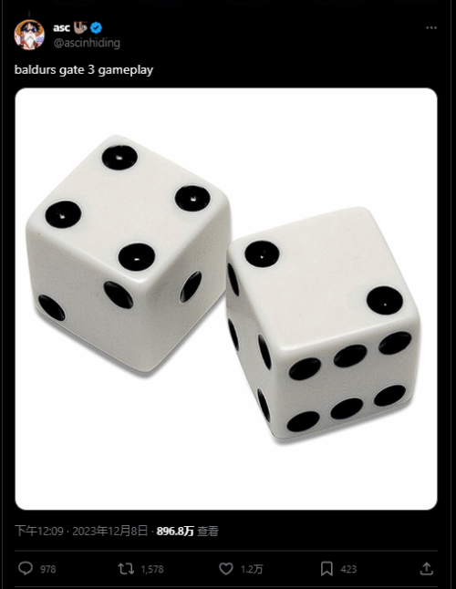虽然其在评论区发表了一张骰子的图片,并配文:“《博德之门3》的玩法也就这样。”这两条推文目前在X平台上的浏览量分别打到了4000万和800万。
