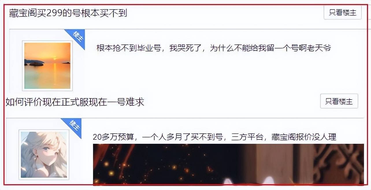 以至于官方藏宝阁一些性价比高的账号早就销售一空,想要蹲个合适的账号还得等很长时间,只能去找加价的号贩子收购,也正因为如此出现了上述现象,让《逆水寒》号贩子惊诧莫名。