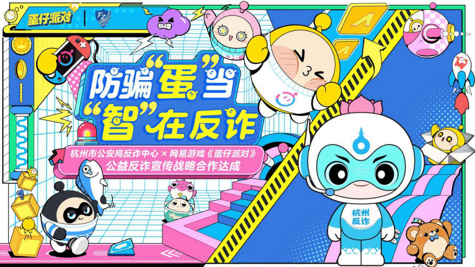 一直以来,《蛋仔派对》在反诈事业道路上不断开拓创新,创造更多的可能性。通过与上海通管局、上海公安、杭州公安、广州公安、西安公安、淄博公安、北京网信办等权威机构协防共建,深化警企联动,共创防诈内容生态。例如,通过“握手”杭州市反诈动漫 IP 形象“杭小智”,联合蛋仔IP形象打造了趣味科普视频栏目,有效地结合了反诈知识和趣味科普。