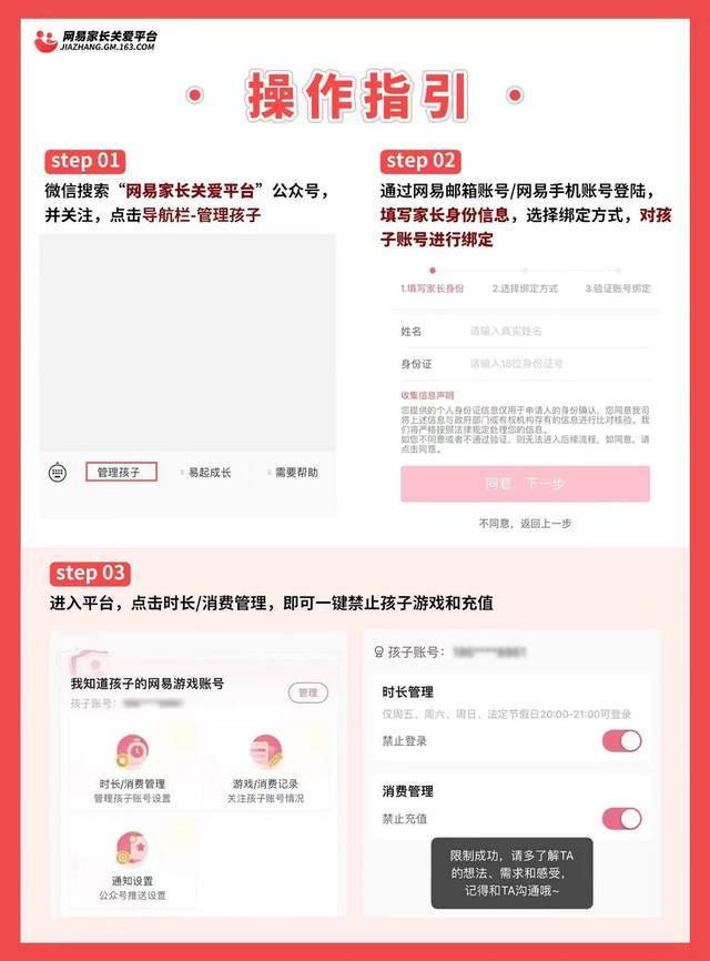 此外,游戏还配备了升级版的未成年人防沉迷功能,包括一键禁止充值和一键禁止登录。家长们只需通过“网易家长关爱平台”,便能在自己的手机上关闭孩子的充值通道和登录通道,有效防止未成年人使用成年人账号规避防沉迷限制,并避免他们使用家长的支付密码进行游戏充值。