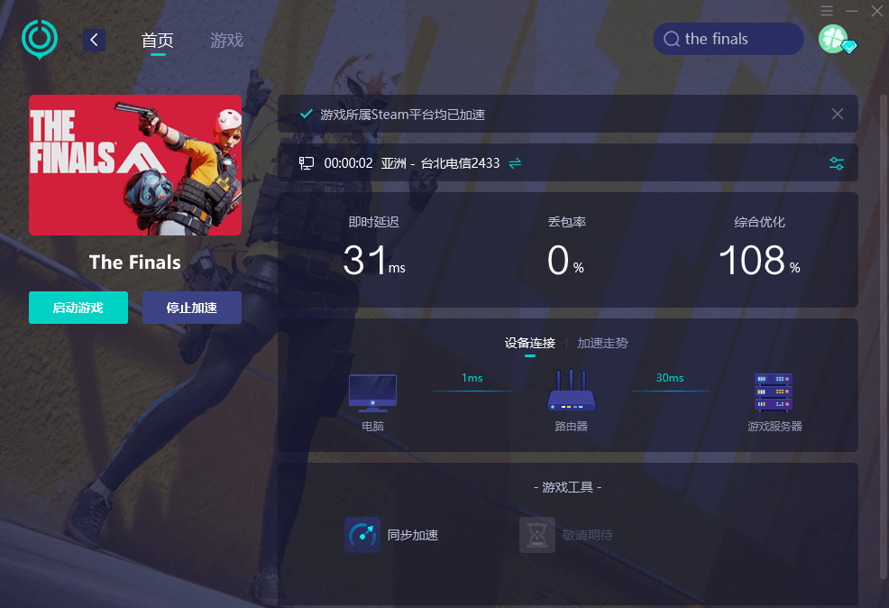 然后——加-速后即可得到稳定的网络连接,畅玩最终决战thefinals