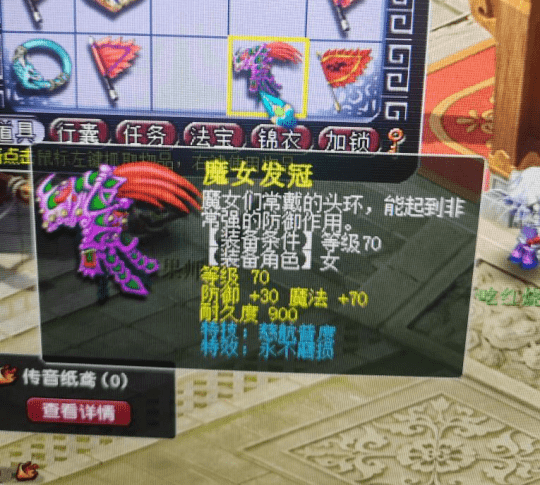 同样都是鉴定装备,下面出场的少侠运气也很出色。他在鉴定抓鬼环装时,炸出了“逆天”的双蓝字。这是一件70级女头,双蓝字分别为慈航+不磨。由于女头等级较低,无法在高端赛场使用,只能当娱乐玩具,大概能卖个一千多万。