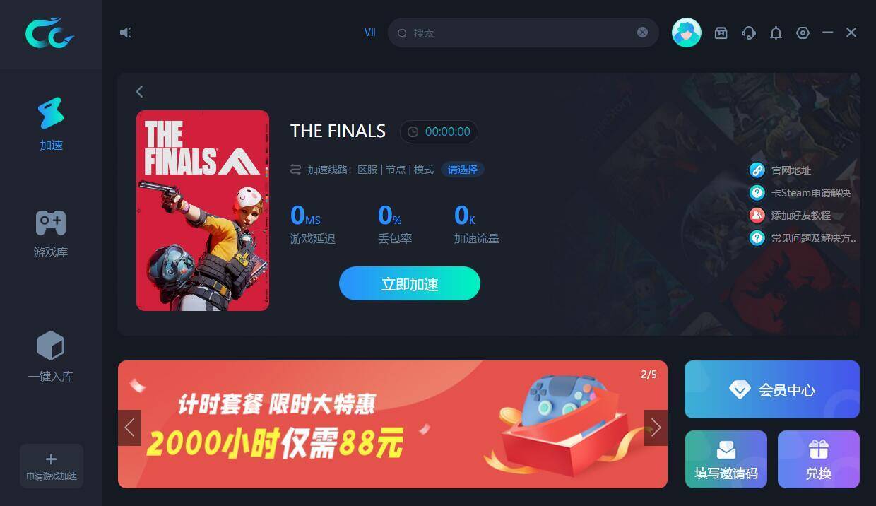 ——总之,《THE FINALS》是一款充满乐趣和挑战的游戏,它不仅可以让玩家体验到射击游戏的刺激和快感,还可以让玩家与队友一起协作,共同完成任务和登上巅峰。如果你喜欢射击游戏,不妨来试试吧!目前cc已开启该游戏的免费加速且支持steam永久加速输入兑换码CC666,还可获得3天时长