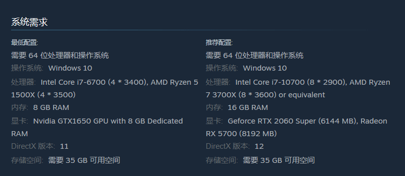 《兄弟:双子传说》重制版进行了画面的完全升级,配置要求也大提升: