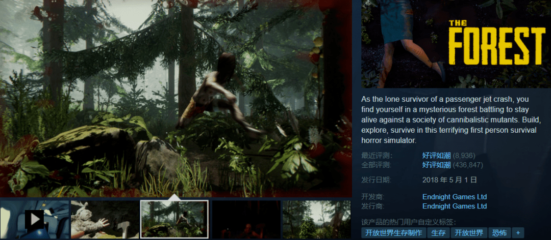 【短评】:砍树模拟器,无论是单人田园牧歌(顺便打打野人),还是团队多人郊游都是个很不错的游戏。就算配置一般的电脑也能享受到不错的画质。
