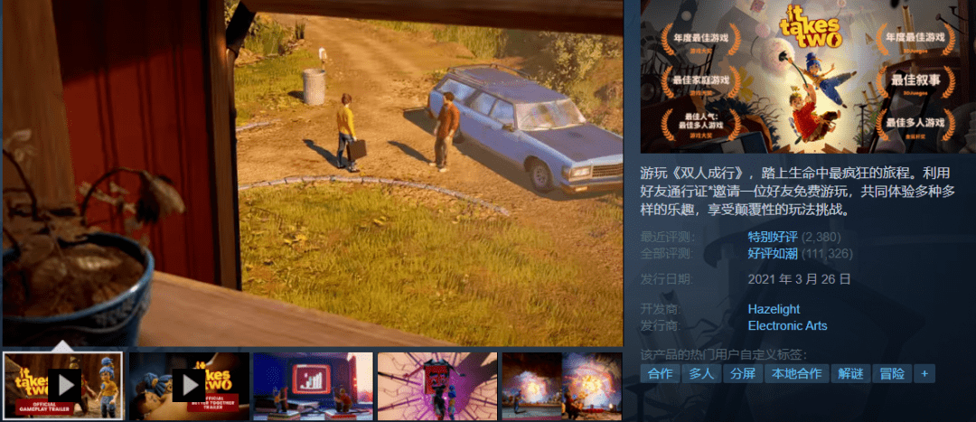 【短评】:脑洞包括场景美术音乐都没得说,但是高难度高配置游戏。你需要两个手柄和一个能够陪你一起玩游戏的好朋友。