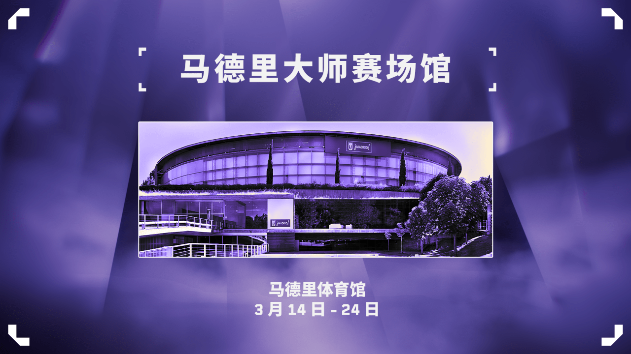 2024年首个大师赛,将在西班牙马德里。在3月8日至24日,来自全球的8支顶尖队伍将齐聚马德里体育馆,参加2024赛季的首个国际赛事。大师赛将采用全新的赛制,从瑞士轮阶段开始,最后以大家熟知和喜爱的双败淘汰轮结束。观赛门票将于12月14日开售!