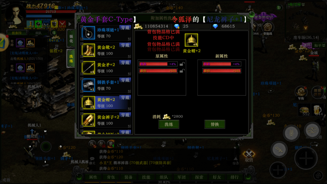 上次更新之后,很多小伙伴反馈说等级不好升的问题,现在服务器人性化了,一个任务就是一级,我现在做的这个任务96W经验,而我现在升一级只需要85W的经验,而且红月的怪物都是一片一片的,怪物粘人,而且怪物刷新的速度也比以前快的多再加上服务器每天给大家发的各种经验药水BUFF现在升级真的非常轻松拉。