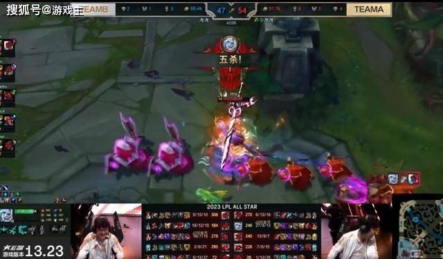 随着全明星正赛的开始,几名选手也是玩起来了,非常有意思的娱乐阵容,最初的时候老ig战队的几个人被分散到了不同的队伍,Rookie使用了阿水的卡莎皮肤,结果在河道不断跳舞的时候,被the shy的ez直接给偷袭了。几轮游戏过后,宁王也是拍了一下子晒的肩膀,两个人直接起身坐到了另一个队伍边上,曾经的梦幻阵容再次合体,也勾起了很多老粉丝的回忆,虽说是娱乐对抗,但是也将整个的比赛节奏拉满了。