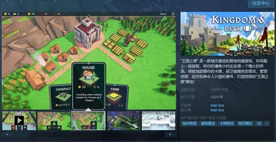 今日(12月12日),城市建造和牌组构建游戏《王国之牌》Steam页面上线, 游戏支持简体中文,预计于2024年正式发售,感兴趣的玩家可以进入商店页面。